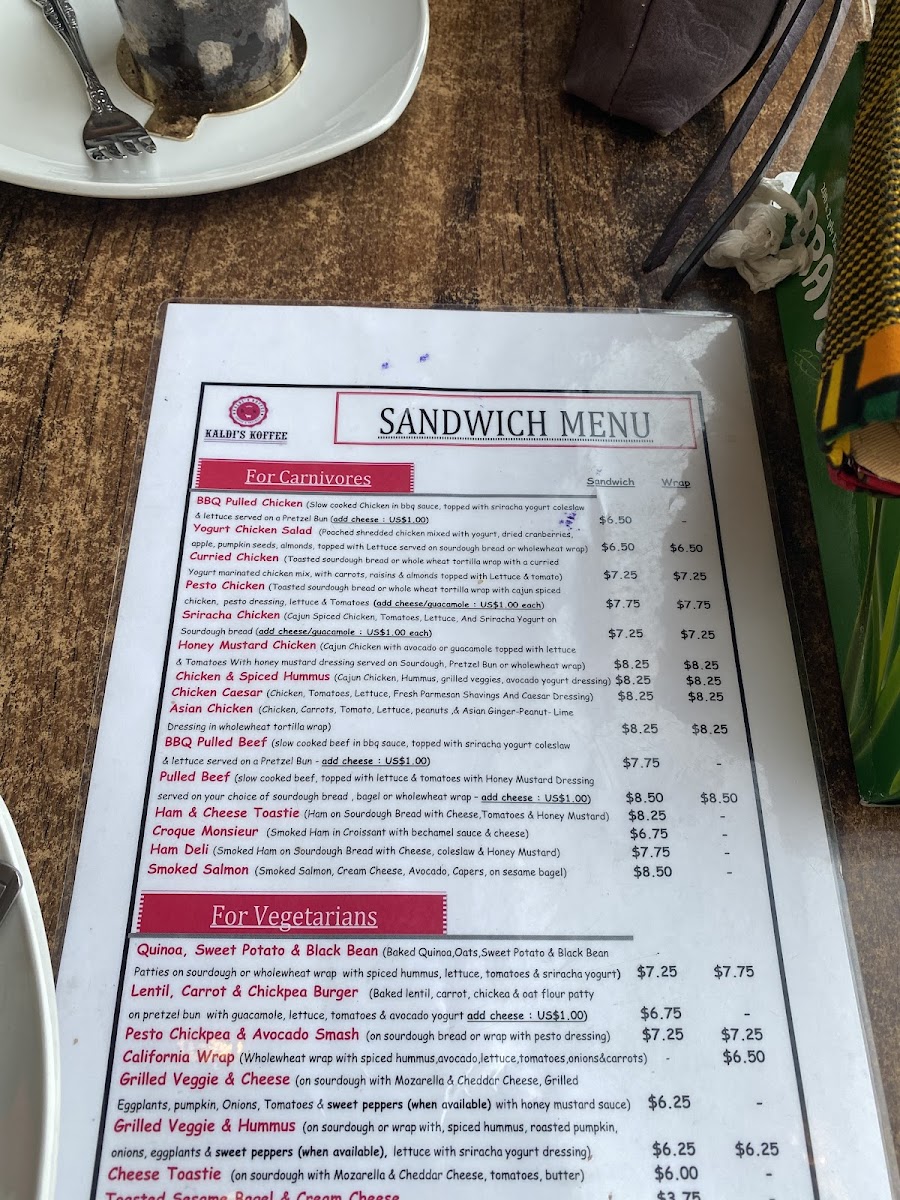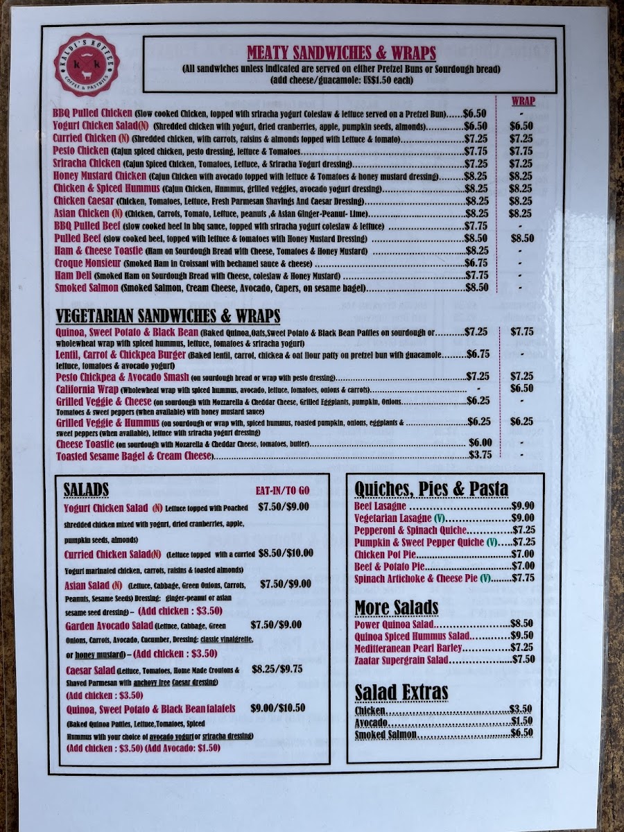 Kaldi's Koffee Menu